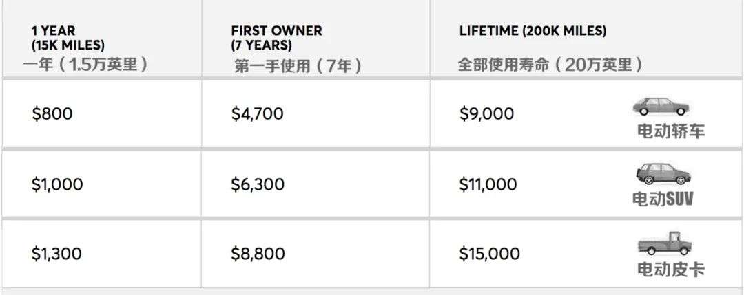 而在汽车终生使用年限内,以驾驶里程32万公里计,电动汽车较轿车节省燃料费用8500美元(5.7万人民币),较SUV节省1.12万美元(7.55万人民币),较皮卡节省1.45万美元(9.77万人民币)。