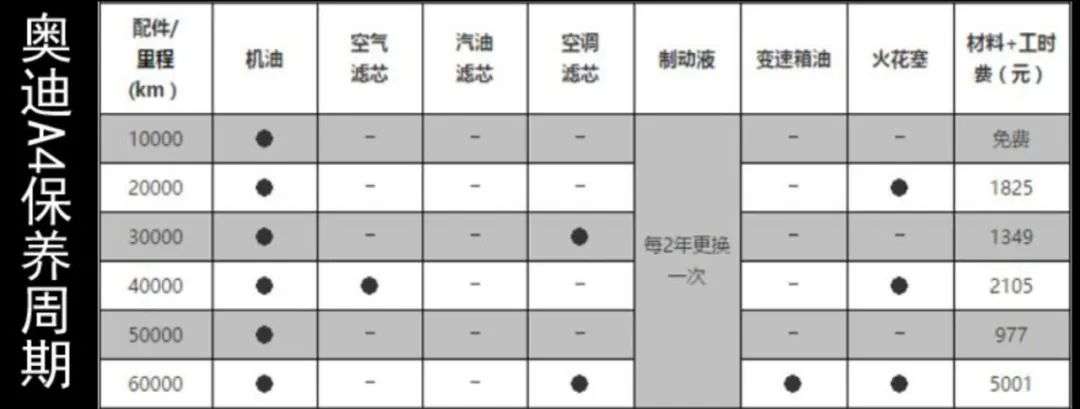 而奥迪A4保养周期为1万公里,除了机油,还要根据行驶里程定期更换汽油滤芯、火花塞、变速箱油,6年12万公里下来,至少比Model 3高2万元左右。