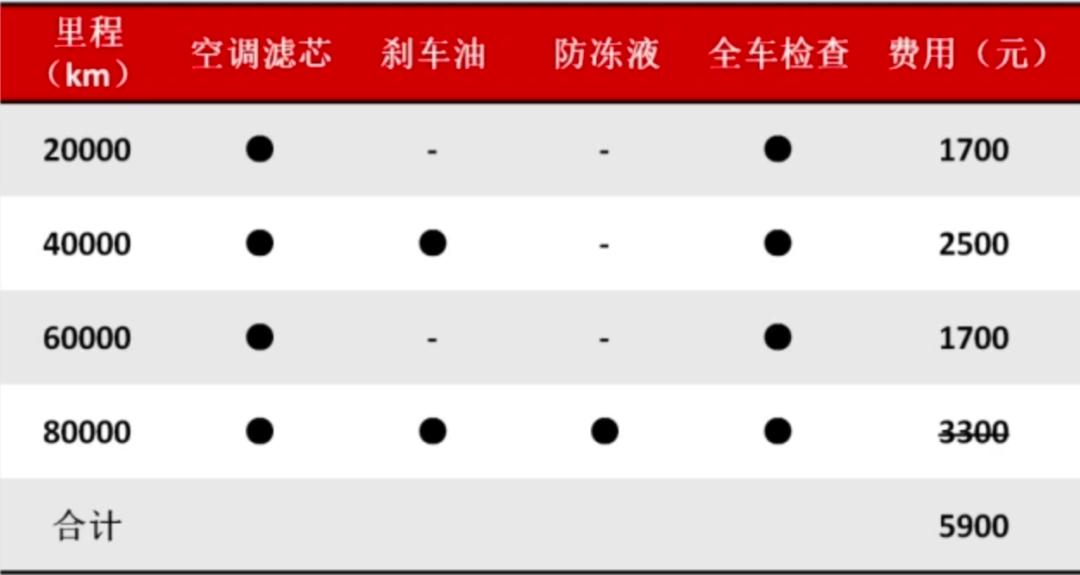 根据保养内容不同,特斯拉官方三个保养价位,分别是1700元(每2万公里)、2500元(每4万公里)和3300元(每8万公里),6年12万公里保养费用总计为1.34万元。