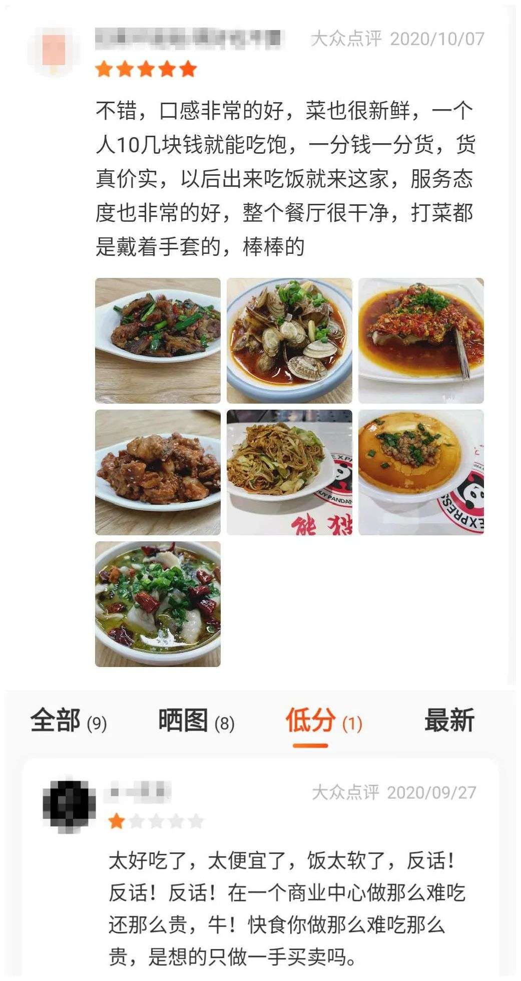 在为数不多的点评中,有消费者留言:口感非常的好,菜也很新鲜,一个人十几块就能吃饱,一分钱一分货,货真价实。而另一条留言却说:快食你做那么难吃那么贵,是想只做一手买卖吗?