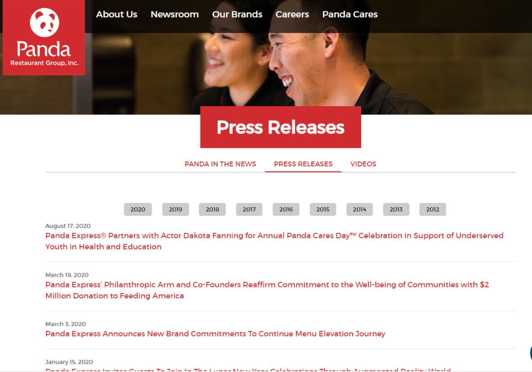 不过,每经记者在Panda Express的公司官网上没有查到相关新闻。