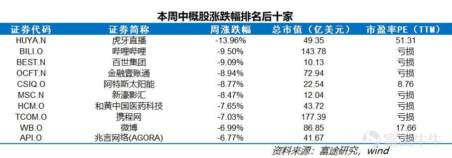 2、哔哩哔哩本周下跌-9.50%,基本回吐上周涨幅。近期的美股中概股回港浪潮中,也出现了B站的身影。此次来港上市,市场对于B站成长的疑虑还是不少的。