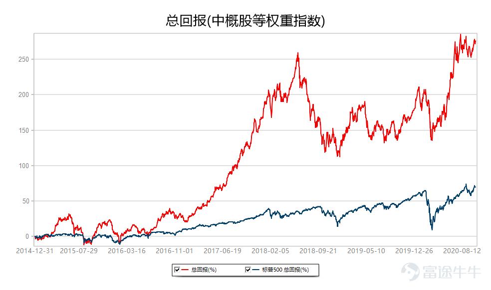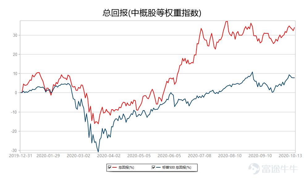 2015年1月1日以来中概股等权重指数上涨276.37%,跑赢标普500指数,相对回报率为163.32%,总体表现明显优于美股大盘。
