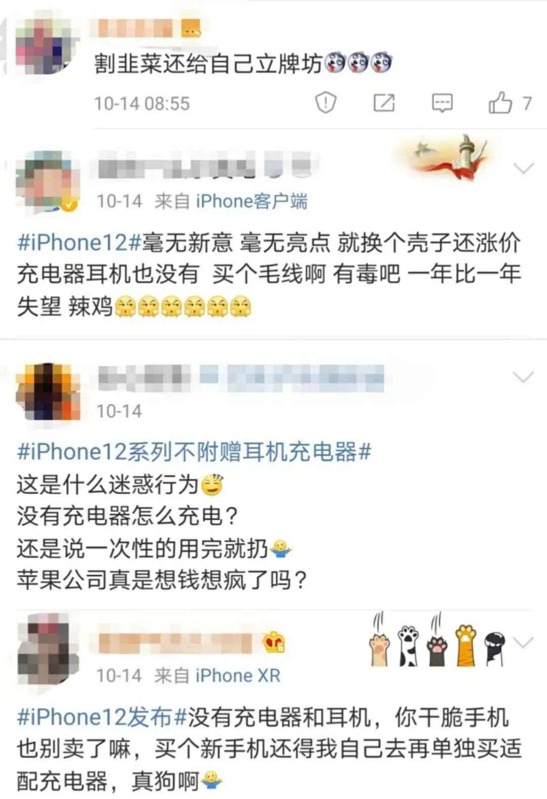 没有充电器和耳机,是此次iPhone 12系列最大的变化,也是网友最大的吐槽点。