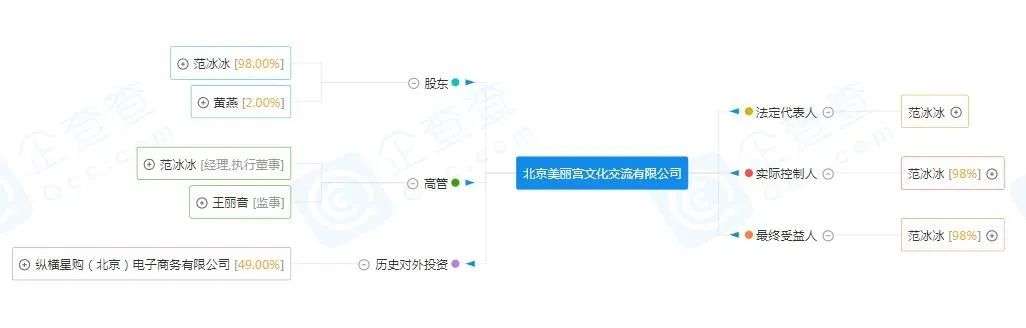 截至目前,从股权关联上来看,范冰冰已不再持有北京纵横星购任何股份。