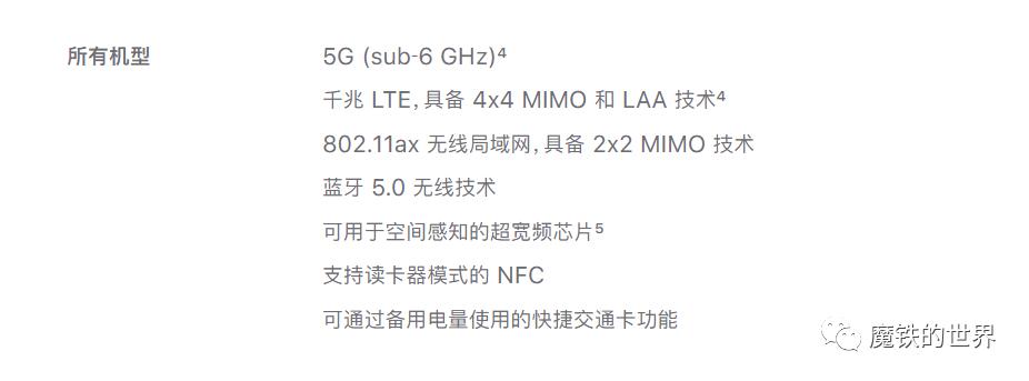 在苹果公司官网上,对iPhone 12系列网络连接的介绍中,明确标出全系列支持蓝牙5.0。说实话,2020年了,iPhone还只支持蓝牙5.0就有点说不过去了,因为现在安卓旗舰手机基本标配蓝牙5.1.