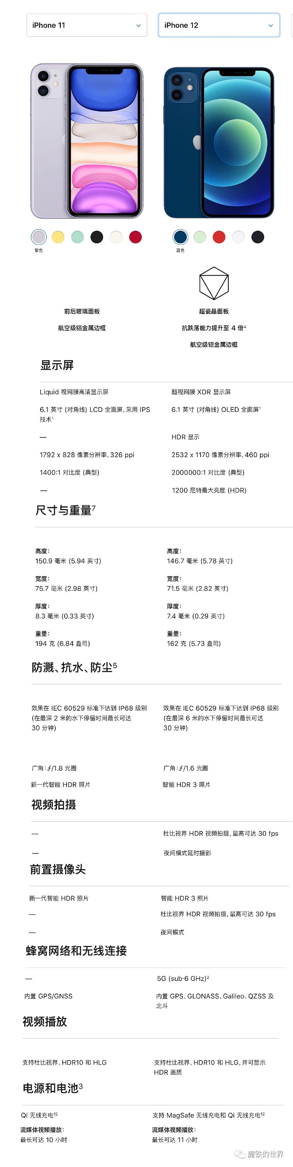 相对于iPhone 12 Pro和Max版升级的抠抠搜搜,苹果公司在升级iPhone 12时大方了许多,在屏幕材质、面板玻璃、防水标准、摄像头光圈、视频拍摄、视频播放、网络链接、续航等方方面面,都做了大幅度提升。详细见下图。