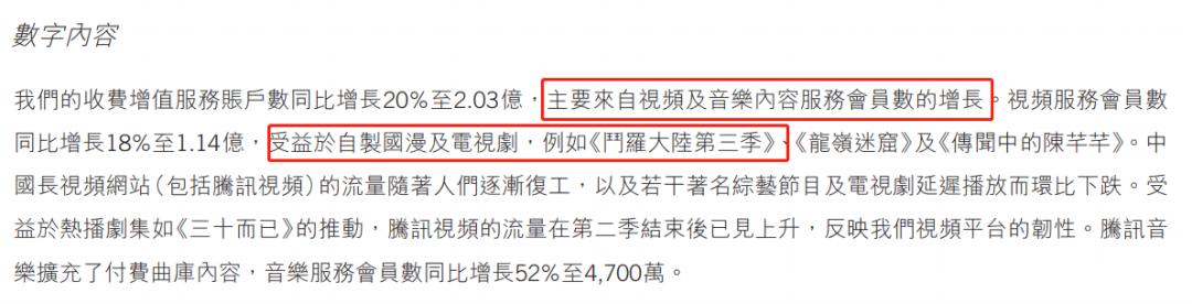 2020年腾讯的年中报提到,上半年腾讯视频综艺和电视剧因为无法复工等问题,流量环比下跌,但是《斗罗大陆第三季》等主要动画和IP改编电视剧,却拉动了平台会员数的增长,可见动漫分类已经发挥了不少作用。