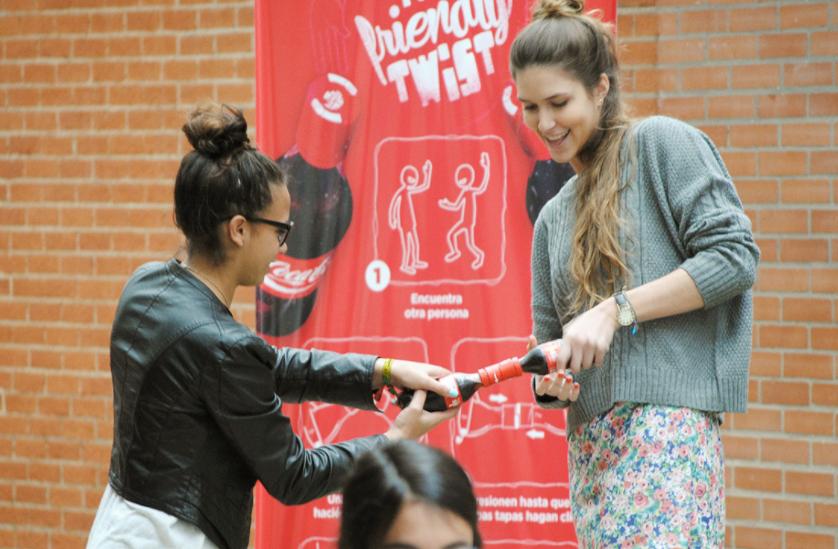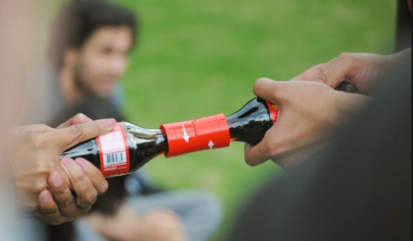 可口可乐非常善于用瓶盖做出营销事件,为了帮助刚进入大学的大一新生尽快建立友谊,他们还设计过一款“Friendly Twist友谊转转”瓶盖,将两瓶可口可乐连在一起,只有两个人通力合作,同时向相反方向旋转才能打开瓶盖。