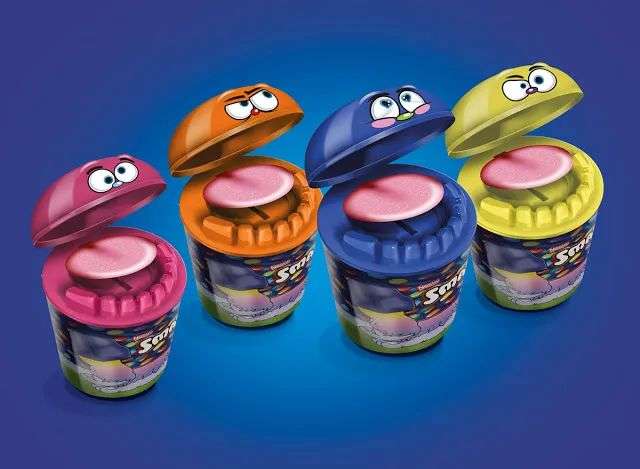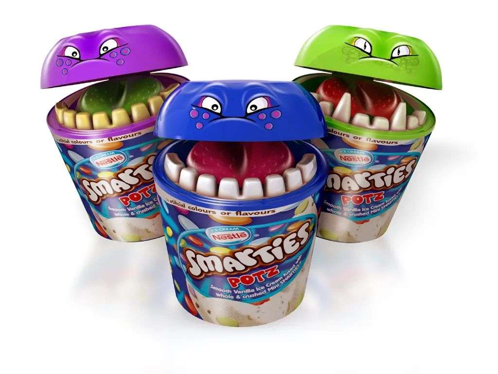 同样是怪兽,雀巢公司这款Smarties 系列糖果更进一步,直接将瓶盖设计成怪兽的大嘴巴,从怪兽嘴中“夺回”糖果,让吃糖别有一番乐趣。