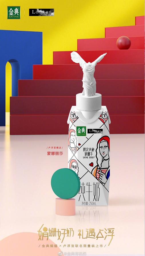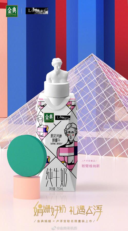 上月底,金典有机奶还联名卢浮宫,推出一套“金典×卢浮宫联名限量版”,将断臂维纳斯、胜利女神像等卢浮宫“镇馆之宝”做成瓶盖,喝奶的同时也能获得艺术熏陶。截止目前,#娟姗好奶礼遇卢浮#超话在微博中收获170万+次阅读。