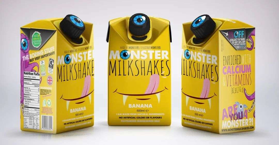 这款“Monster Milkshakes 怪兽奶昔”,将包装按照口味设计成形态各异却不失可爱的怪兽同时,也不想让瓶盖破坏整体的和谐感,于是,“怪兽之眼”瓶盖就此诞生。