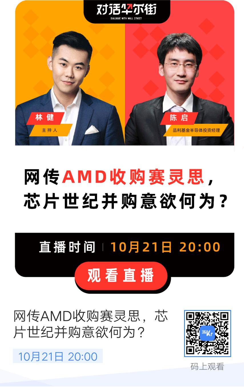 10月21日(周三)晚8点,常驻华尔街财经主持人林健,将和品利基金半导体投资经理陈启一起聊聊【AMD收购赛灵思,芯片世纪并购意欲何为?】