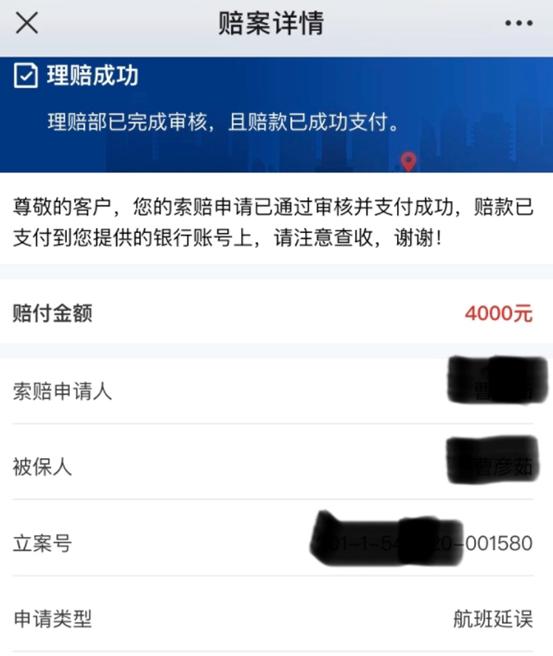 一位羊毛党也因为航班取消,而获得了两笔4000元赔付金。