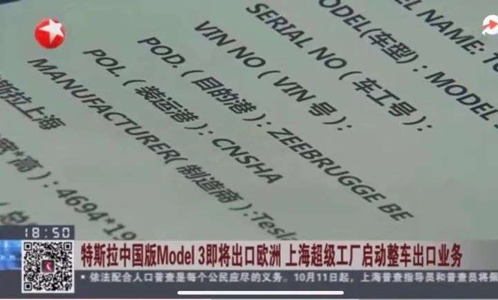 而据上海东方卫视报道,这批出口欧洲的Model 3总数高达几千台,已运抵上海海通国际汽车码头,预计下周二启航,最快下个月底抵达比利时泽布吕赫港口,将销往德国、法国、意大利、瑞士等十余个欧洲国家。