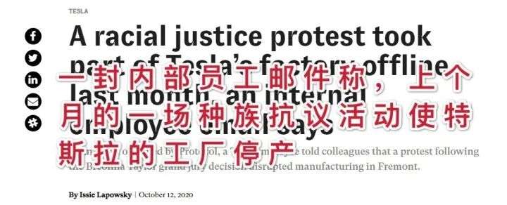 一方面,弗里蒙特工厂要把一部分产能匀给新车型Model Y;另一方面,就在一个月前,弗里蒙特工厂的特斯拉员工发起和平抗议行动,再度导致工厂短暂停产。