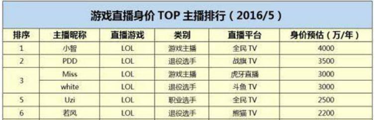 相比较不善言辞的若风,PDD和卢本伟两人直播风格搞笑,留下过诸如“全英雄联盟最骚的骚猪”、“卢本伟牛逼”、“阿姨再给我倒一杯卡布奇诺”之类的热梗,再加上实力顶尖,身价自然跟着水涨船高起来。在2016年的主播身价预估中,他们的签约费已经上升到了3000万/年。