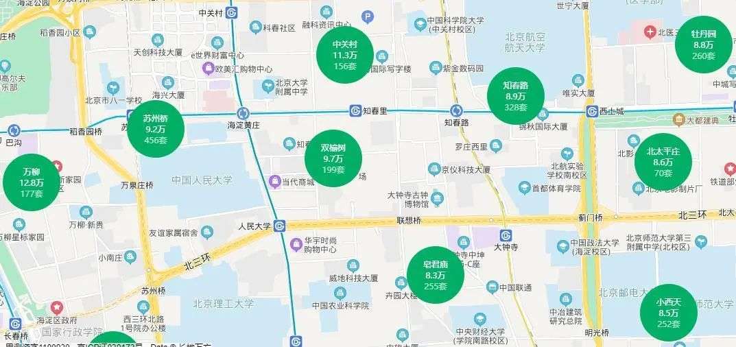 中关村的房价更是堪比北京东西城,高达11万以上,周边万柳区域是富人的居住地,有著名的万城华府、单价在17万以上,这里还有中国最牛的人大附,随即周边最贵的学区房。