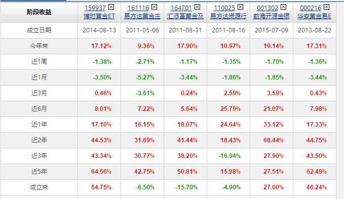 诺安全球黄金和嘉实黄金两只基金是主要投资于跟踪伦敦市场国际现货黄金的ETF。两只基金投资黄金的比例不低于80%
