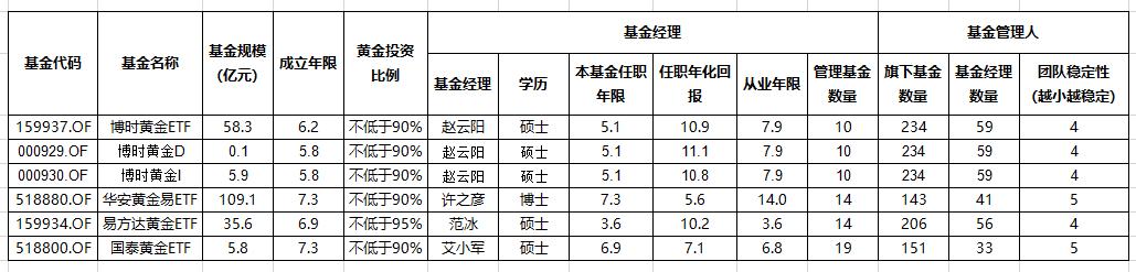 在黄金投资比例方面,易方达黄金ETF(159934.OF)投资黄金现货的下限比例最高为95%。