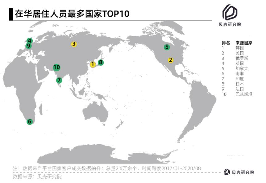 在贝壳平台上,韩国人占城市国际客户总量的18.1%, 排名该城市第一。