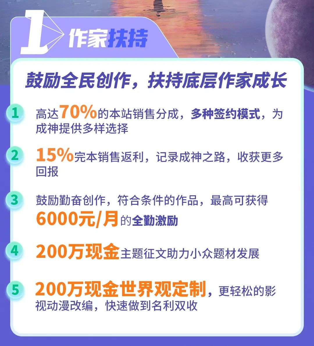 应该说,较阅文之“职业作家星计划”和番茄的“星火计划”,书旗的“星神计划”在零门槛签约上打破了行业规则,之前让新作者感到头晕眼花的冗长签约流程和法规文档也都逐渐被取代,再加上不俗的稿费标准和流量支持,让新作者有更多的精力聚焦于内容创作,也让更多年轻人的文学梦想能够从想象变成现实。