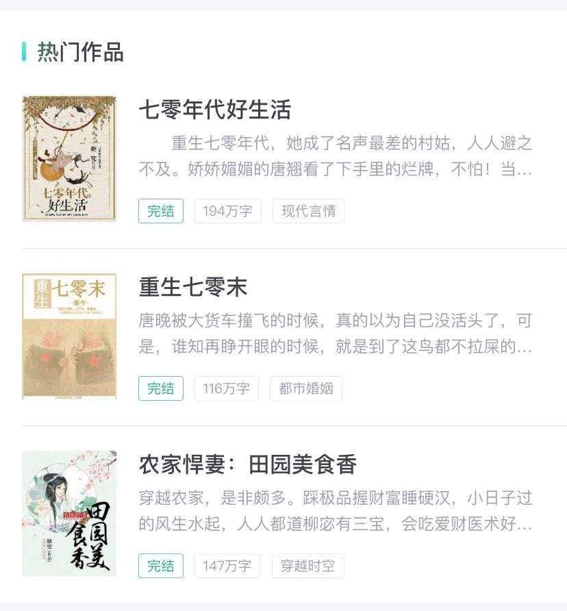 以糖兜的作品《七零年代好生活》为例,就是一本相当有新意的女频言情类小说。抛开具体的作品内容和人物剧情等不说,仅就年代小说+言情+穿越的设定就在众多古装穿越的女频作品中,显得尤为突出,自然也吸引了颇多读者的关注。