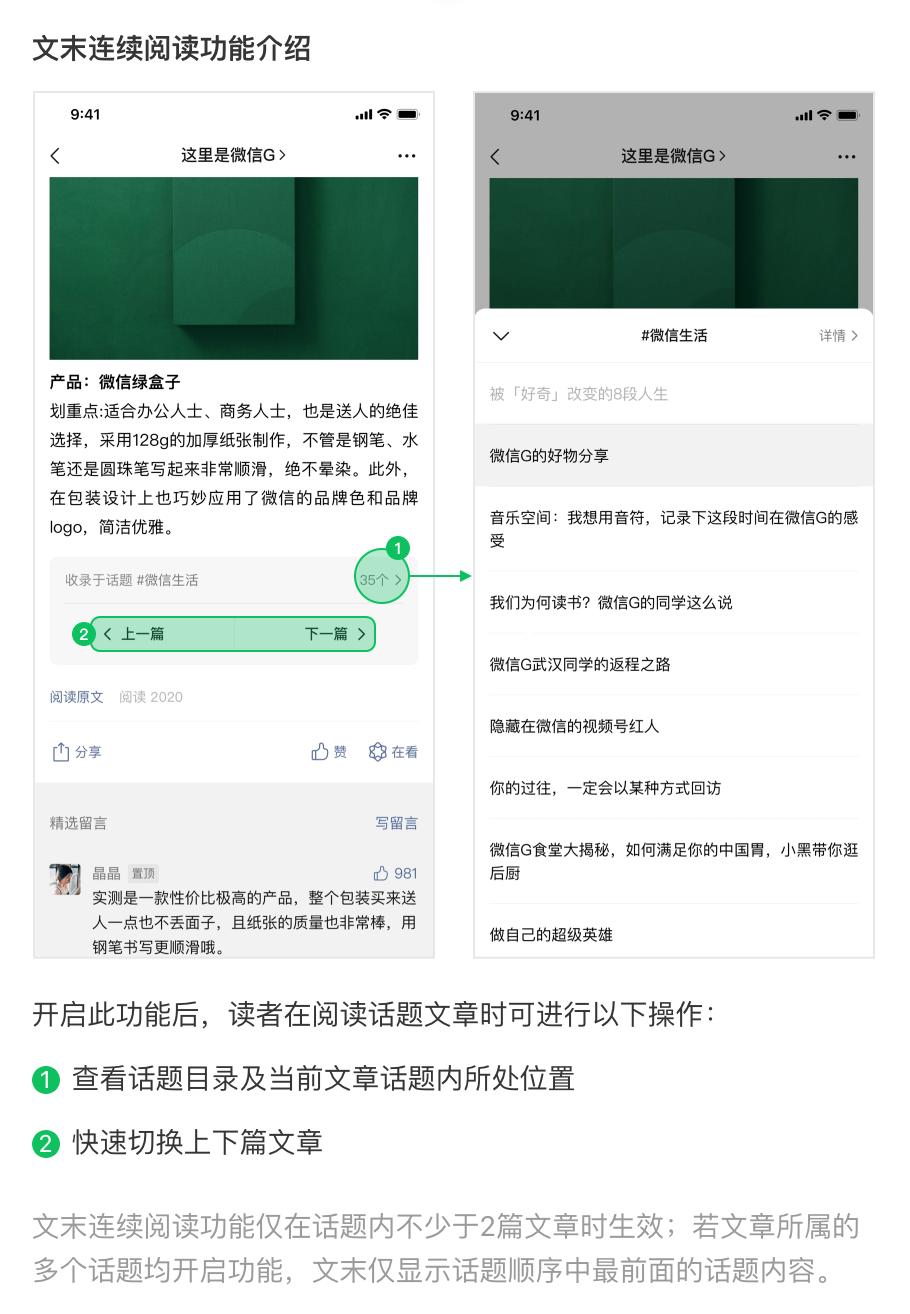 昨天晚上收到微信公众号的一个新功能邀请,官方给这个功能起的名字叫「文末连续阅读」。