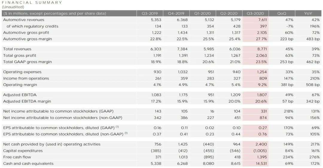 美国时间10月21日下午,特斯拉发布了2020年Q3财报,各项财务数据出奇的好。用特斯拉的话来说就是,「2020年第三季度在许多层面上都是一个创纪录的季度」。