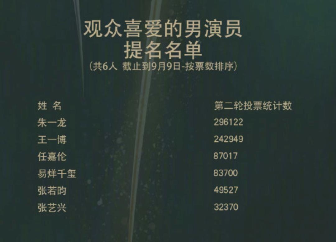 男演员方面,王一博粉丝被清票数最多,减少了73.9万票,但由于本身基数太大,清票后仍以258万票位列第一,领先二、三名的易烊千玺、朱一龙100多万票。最终由赵丽颖、王一博捧得“观众喜爱男女演员”奖杯。