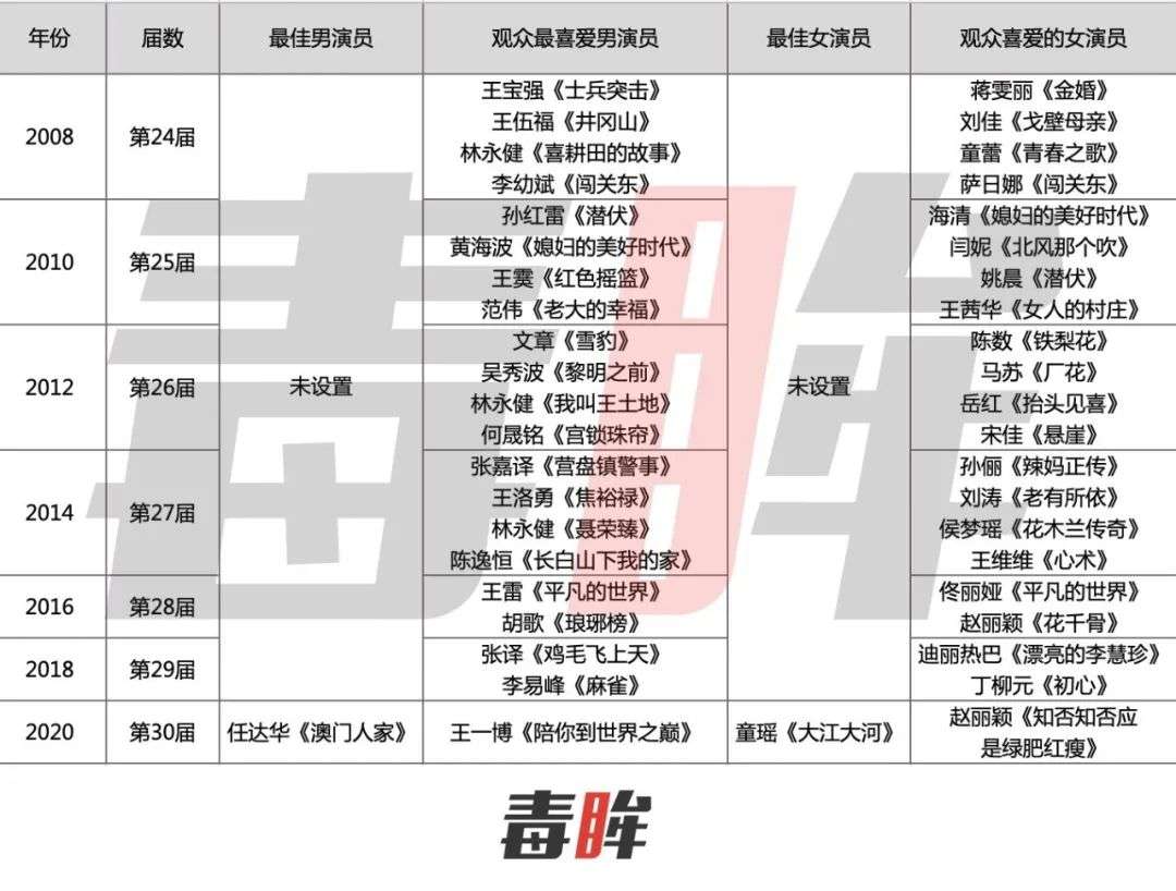 30届中,“观众喜爱的男女演员奖”不再意味着专业奖,也不再是“视帝”“视后”。