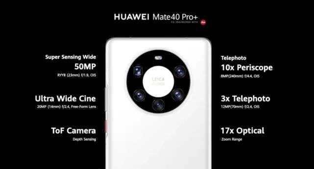 镜头则是华为在此次Mate40系列上又一个大的升级。其中Mate40 Pro+拥有五颗镜头,包括了全新的5000万像素的主镜头,800万像素10X潜望式光学变焦的超长焦镜头,2000万像素的超广角镜头和1200万像素3X的长焦镜头以及一颗ToF镜头。