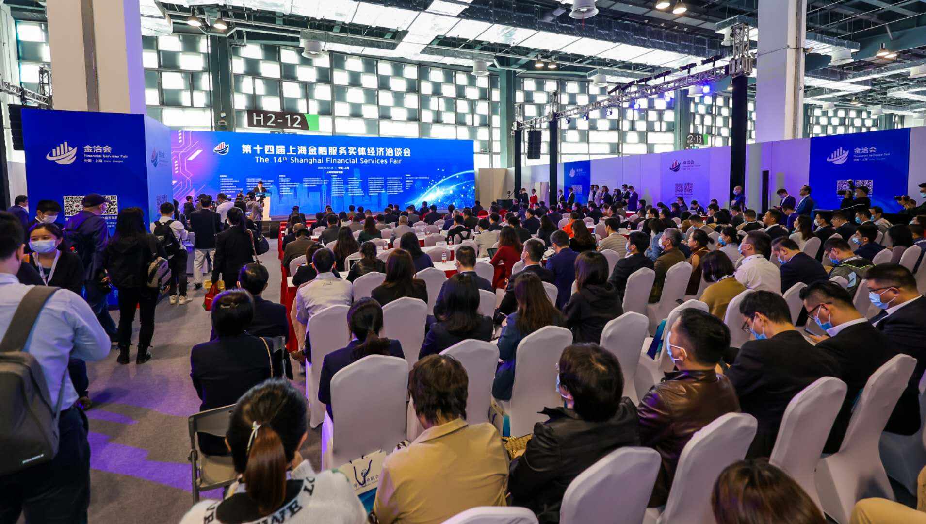10月22日上午,第十四届上海金融服务实体经济洽谈会暨论坛开幕式在上海世博展览馆举行。上海金融业联合会理事长单位交通银行董事长任德奇,上海市金融工作局局长解冬,上海金融业联合会常务副理事长季文冠,副理事长爱建集团副董事长、党委书记范永进,中国(上海)自由贸易试验区临港新片区管委会专职副主任武伟,中国金融期货交易所总经理霍瑞戎,上海银保监局二级巡视员周健,上海证监局二级巡视员钱丽萍、闵行区区委常委、副区长沈军、人民日报上海分社党委副书记、国际金融报社总编辑徐冲及各支持、主办、协办单位,参展机构,上海金融业联合会部分副理事长、理事单位和会员单位领导、媒体记者等近200人出席了本次开幕式。上海金融业联合会副理事长单位上海银行党委副书记朱健主持开幕式,上海金融业联合会理事长单位交通银行董事长任德奇和上海市金融工作局局长解冬分别致辞。