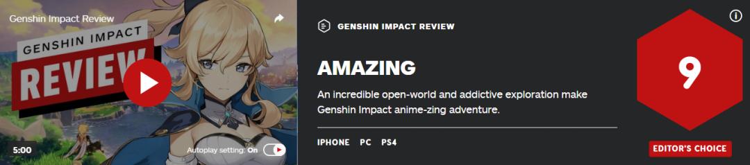 10月14日,全球知名游戏媒体IGN在评测中称“《原神》是今年最令人激动的游戏”,并打出了9分的超高分,将讨论推向第二波高峰。