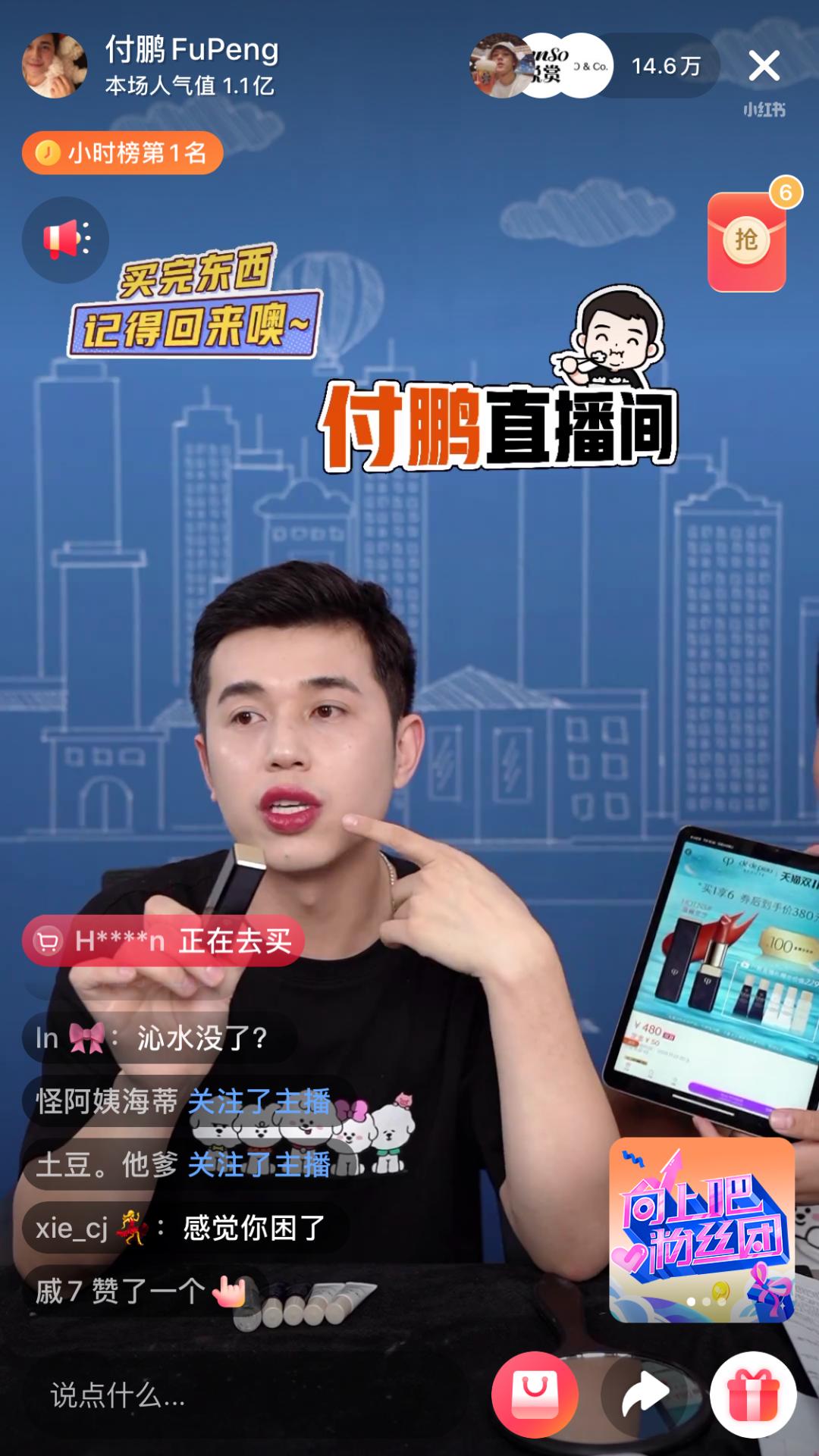 而在李佳琦的直播间如火如荼上演着“购物大战”时,另一边,前“小助理”付鹏的直播带货首秀也在小红书如期开启。