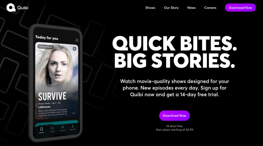 Quibi是一个专门为手机端打造的、高端付费短视频流媒体。