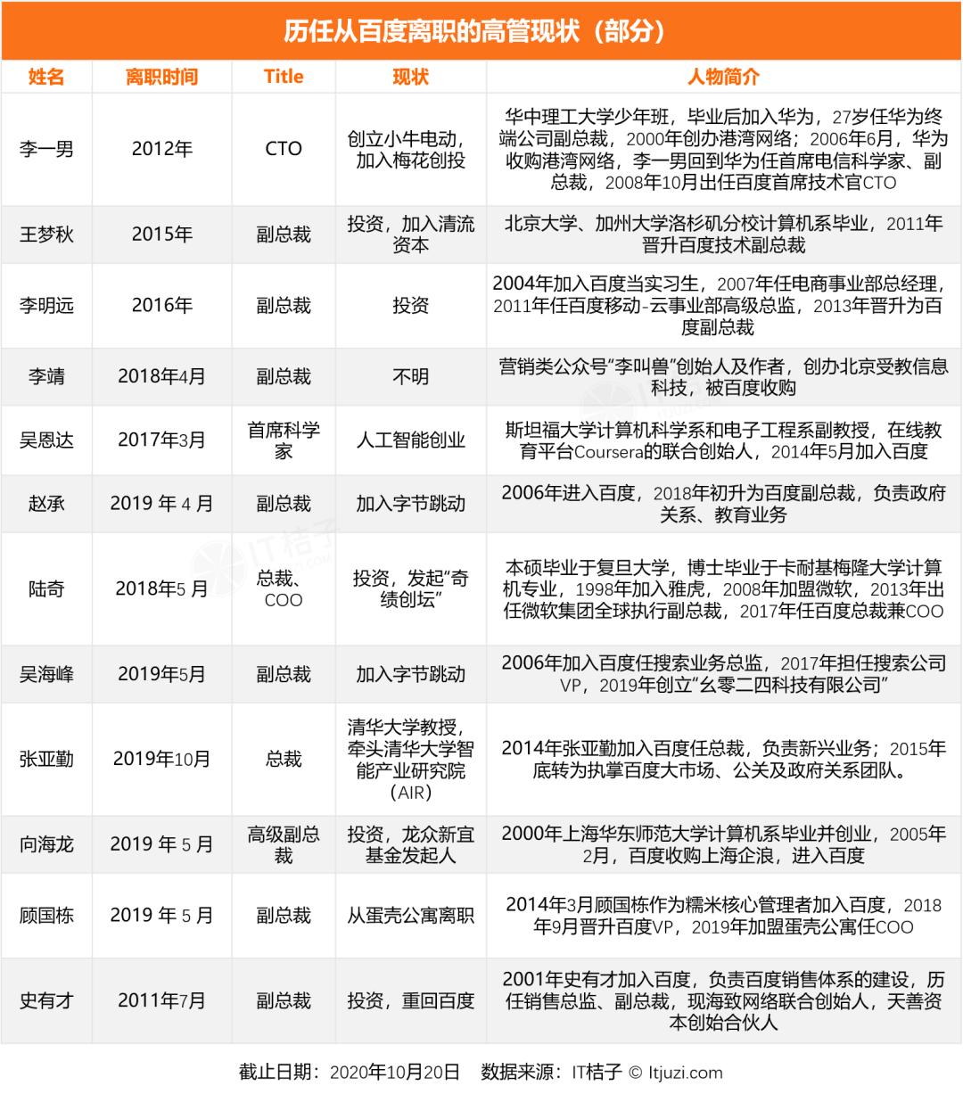 借此机会,IT 桔子盘点一下从百度离职的高管都去哪了。