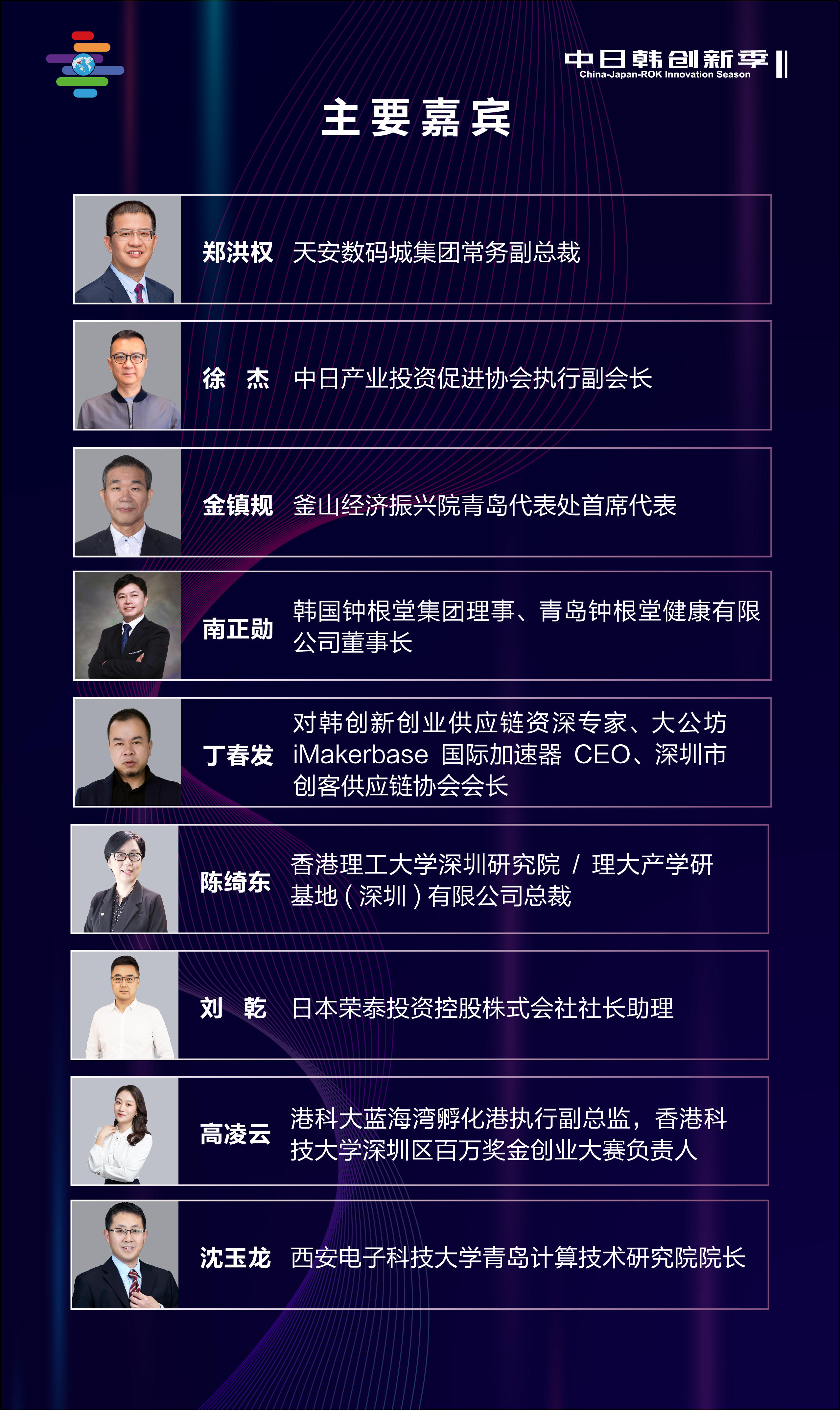 2020年恰逢中日韩创新合作年,中日韩创新季适时拉开大幕。创新季将充分利用平台思维,打造集科技企业、产业龙头、科研院所、科技园区、创投机构、金融服务机构等创新要素聚集的科技创新盛宴,积极探索产业革新与进阶的全新路径,推动前沿技术成果与产业深度融合,加快促进日韩两国科创资源与青岛高质量发展的紧密结合。