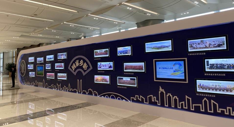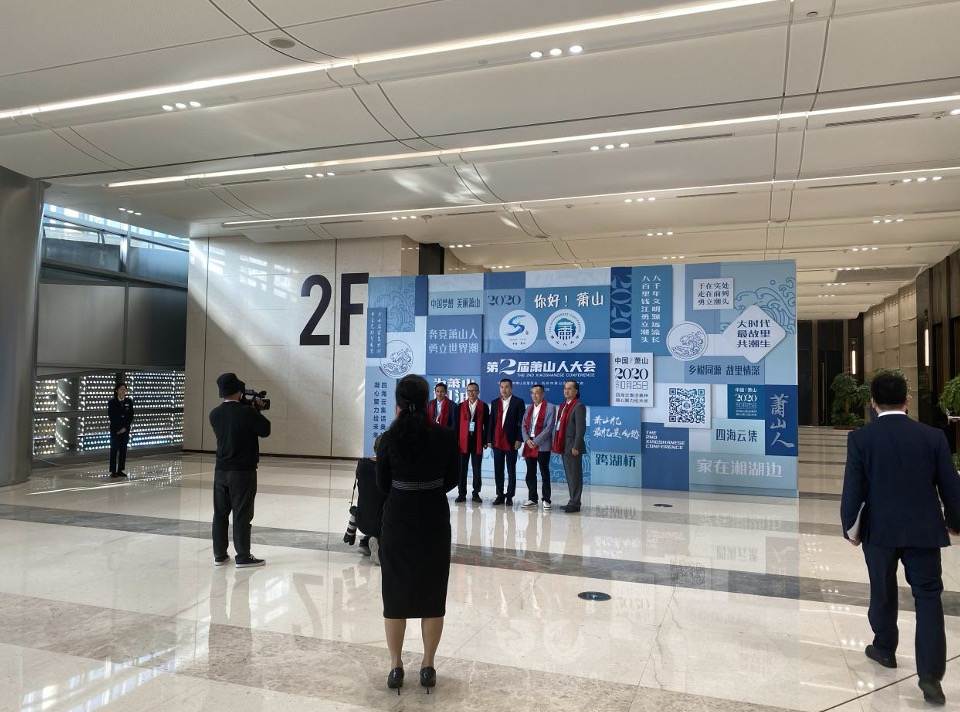 会场门口,一幅幅合照连成“回家乡影”背景墙,这里有萧山乡贤的过去,也有萧山人眼中的“国际萧”,这是萧山的历史长廊,是乡贤的回忆录。