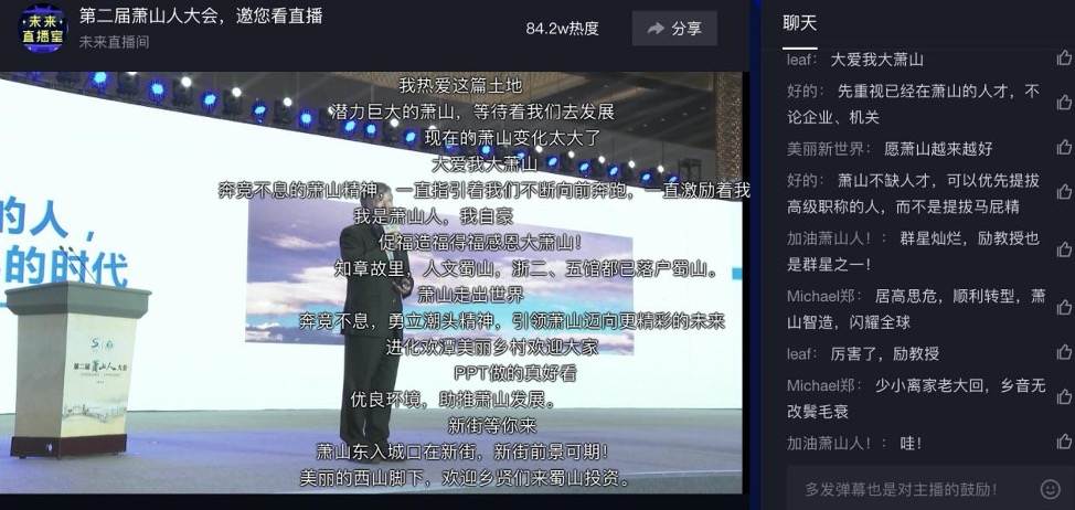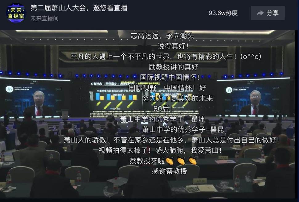 现场,乡贤励建书作为乡贤嘉宾上台演讲,讲述着萧山对他的培育,如今已有成就,荣归故里,在他的心中,萧山的发展一直与自己息息相关。网友们对励建书院士也是满满的敬重,霸屏力挺萧山。