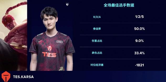 值得一提的是,本局MVP给到了Karsa,而Karsa的盲僧KDA赫然是负值,更加说明了其发挥的作用已经超越了自身经济的限制。