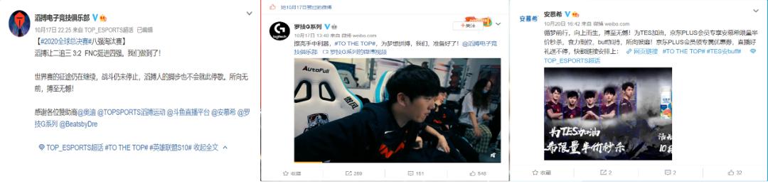 在这场旷世之战落下帷幕时,资本敏锐地抓住了这一良机。安慕希、罗技等赞助商纷纷发微博不遗余力地祝贺滔搏,品牌露出之计大获全胜。
