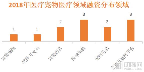 在近三年中,总共有19家宠物医疗相关企业获得融资。其中,有1家宠物保险企业,1家软件开发商,2家宠物药品研发企业,2家宠物用品研发企业,3家宠物医学检验企业,2家宠物互联网平台。