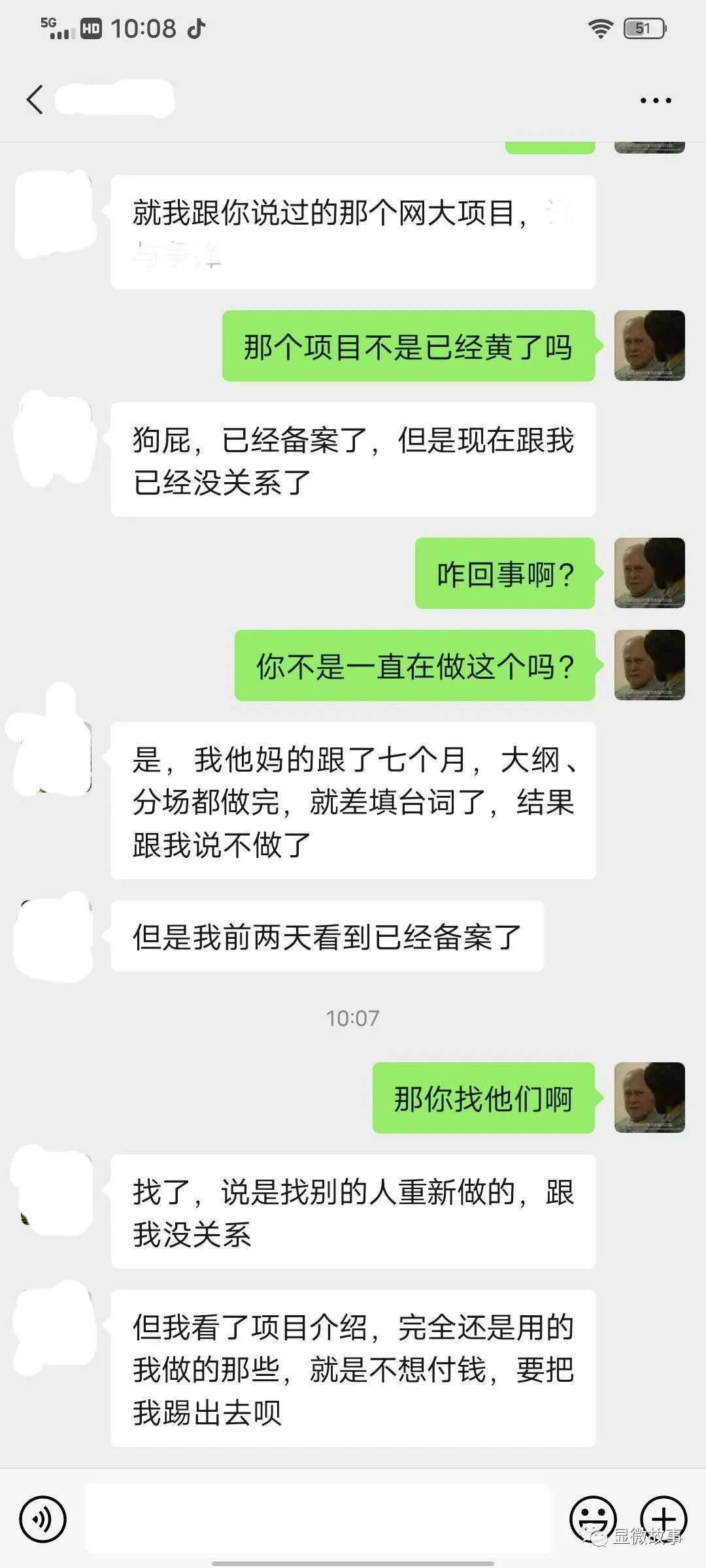 在公示信息里,原始创意、项目的大纲、分场全都copy了我的版本,而他们实际是在最后关头将我踢出局,将我的故事盗走了。