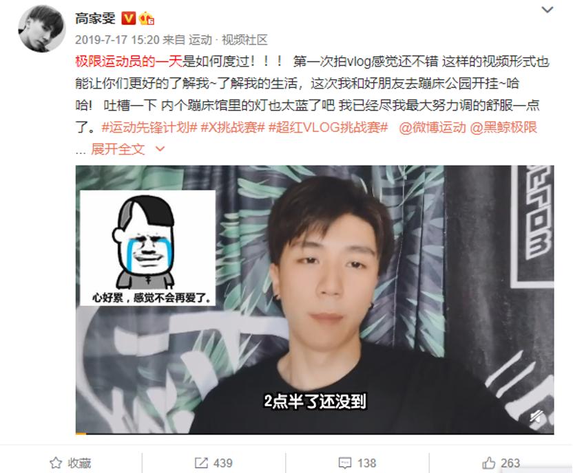 他在微博上感谢自己与粉丝的相遇,希望自己未来可以做更多好的视频。除了让更多人了解到专业的跑酷知识,高家雯也希望带给他们快乐,“用重庆人的幽默乐观去感染他们。”