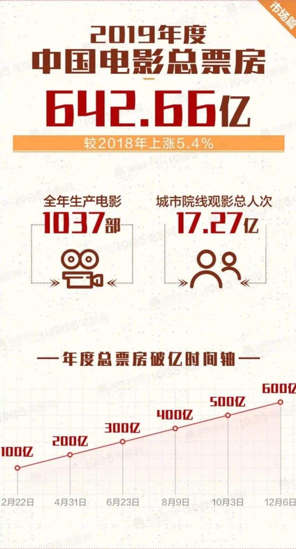类似的问题在中国市场亦有凸显。2019年,全年票房较同比增幅为5.4%,低于前年9%的增速,而全年观影总人次则为17.27亿,同比上涨了不到1%,票房的增长主要来自于票价的上涨。