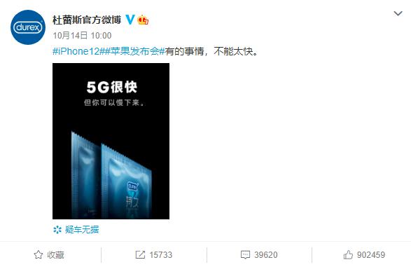 比如这次引起热议IPhone12系列的发布,以杜蕾斯为代表的老“蹭客”没有放过这个热点,照例以寥寥数语加上一张海报迅速走红。