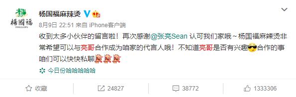 面对热点,杨国福主动作出表态,邀请张亮担任自己品牌的代言人,成功刷了一波热度,涨粉不少,这波借势也为品牌累积了足够的声量。