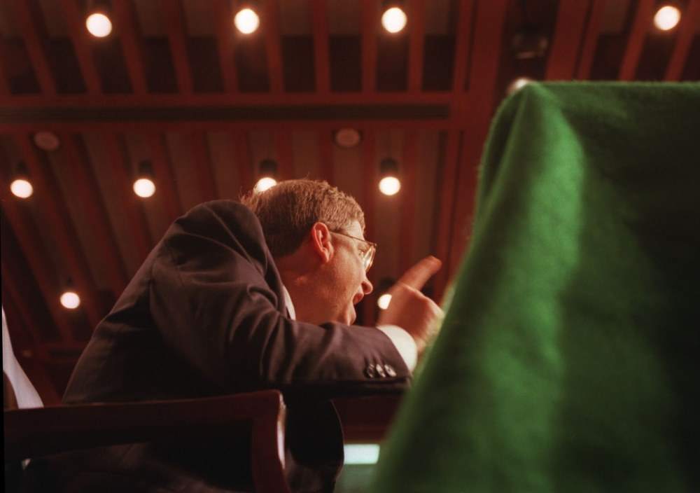 1998年,美国政府对微软提起反垄断诉讼前不久,比尔•盖茨在参议院司法委员会上出庭作证