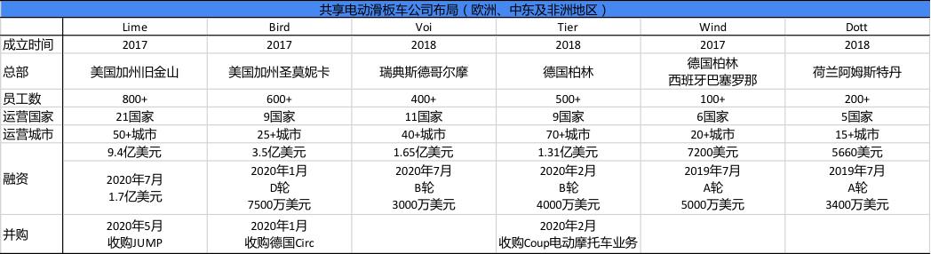 近几年,欧洲共享电动滑板车市场炙手可热。除了最大的两家共享电动滑板车公司Lime和Bird(今年1月收购德国Circ),以及欧洲本土最大的四家Voi、Tier、Wind和Dott以外,Uber、Lyft、Google、Spin、Blablacar等巨头也纷纷入局。